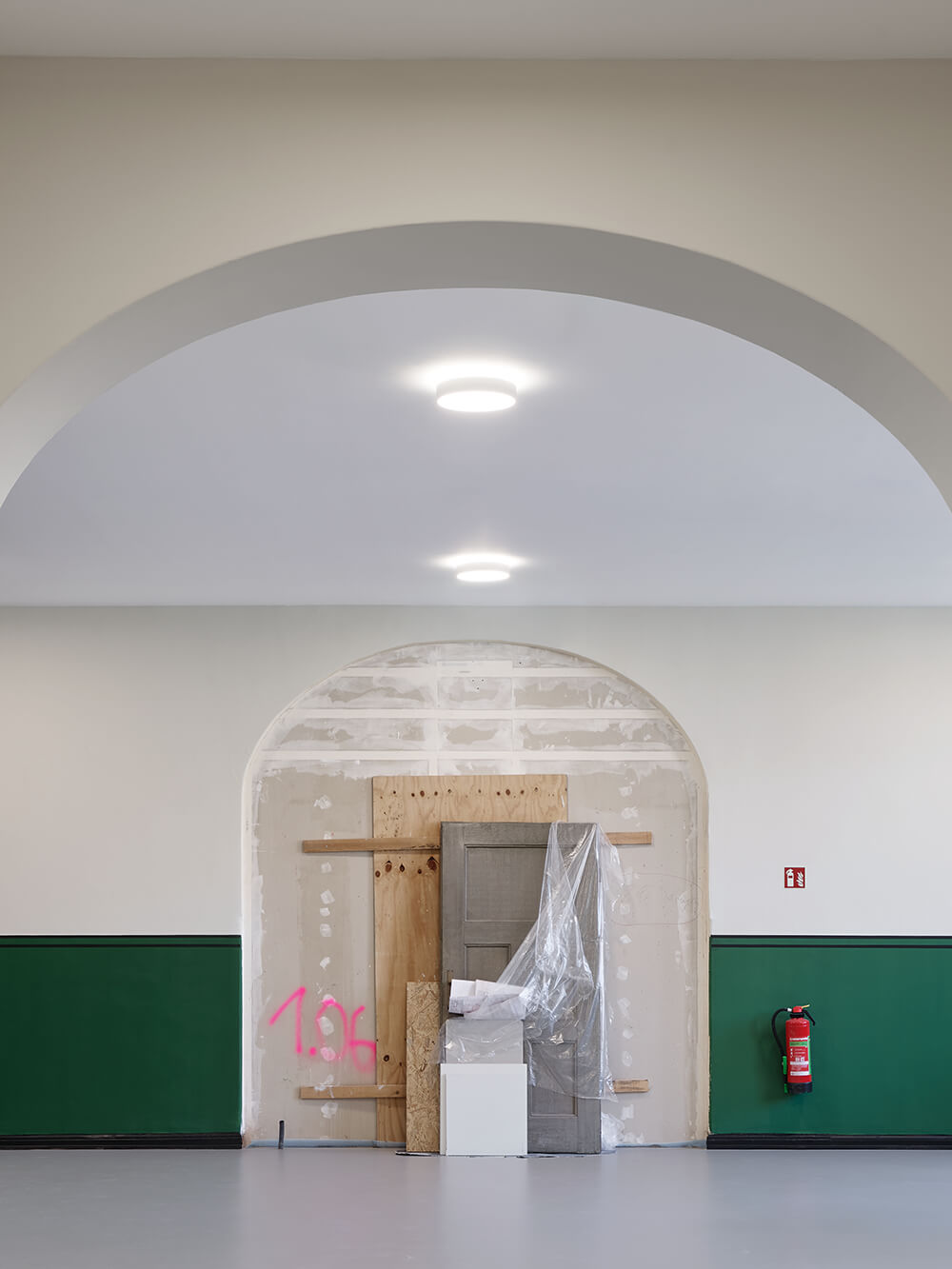 „Während die Vorgaben des Denkmalschutzes beim äußeren Erscheinungsbild und allen Verkehrszonen im Inneren zu beachten waren, konnten alle Klassenzimmer und sonstige Aufenthaltsräume ohne wesentliche Einschränkungen ausgebaut und ausgestattet werden.“