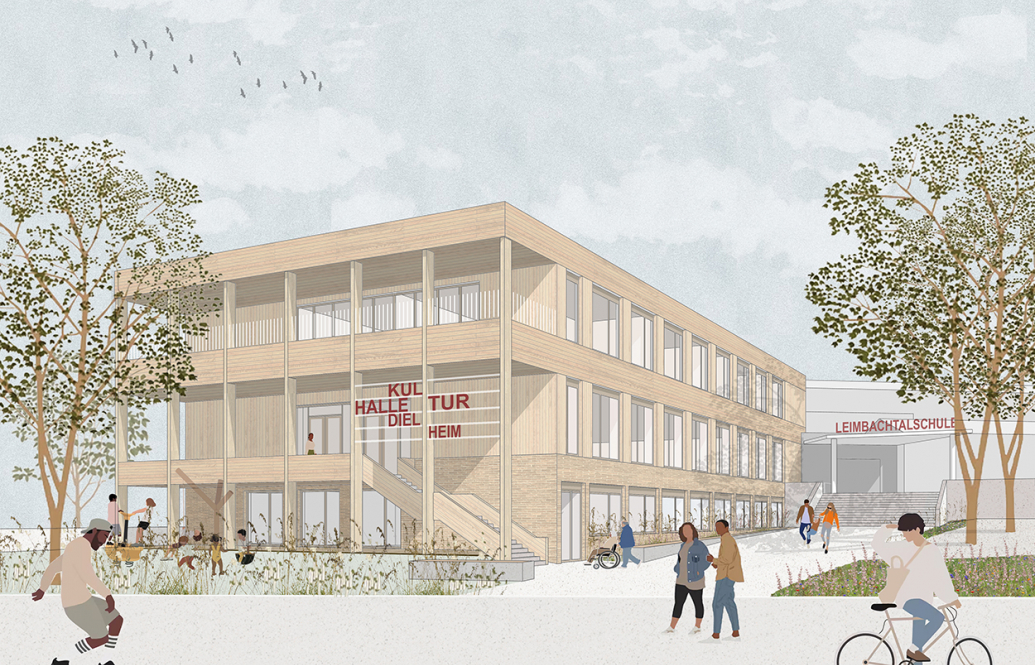 Ziel des Entwurfs ist es einen Schulcampus, mit hoher Aufenthaltsqualität zu schaffen. Der Schulneubau bildet zusammen mit den beiden Sportstätten im Norden und Süden des Grundstücks, sowie dem Ganztagesgebäude ein klar ablesbares Schulensemble. Durch die gewählte städtebauliche Anordnung des Neubaus wird der Campus in vertikale Nutzungsbereiche zoniert.