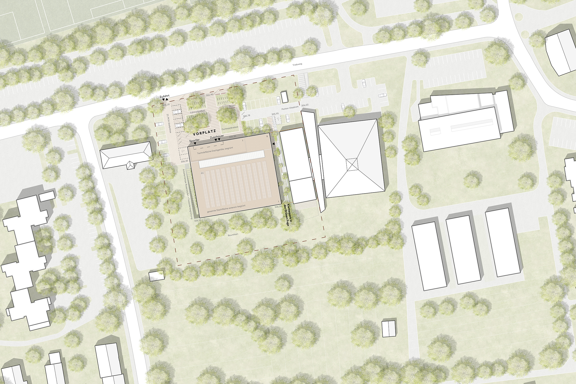 Neubau einer 3-teilbaren Sporthalle mit Zuschauerplätzen und einem Gymnastikraum